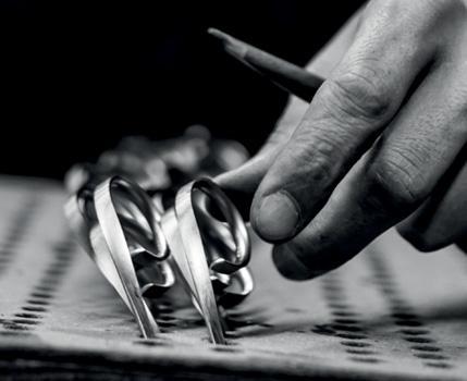 Erfarna hantverkare härdar, polerar och slipar varje sax för hand, vilket garanterar den finaste precisionen och högsta kvalitet på finishen.
